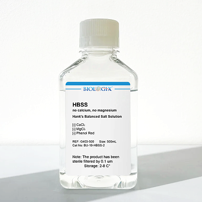 HBSS (Хэнкс... Сбалансированный солевой раствор) используется для различных целей культивирования клеток, включая промывку клеток перед диссоциацией, транспортировку клеток или тканей, разведение клеток для подсчета и подготовку реагентов. HBSS без кальция и магния необходим для вымывания хелатирующих веществ из культуры перед диссоциацией клеток.