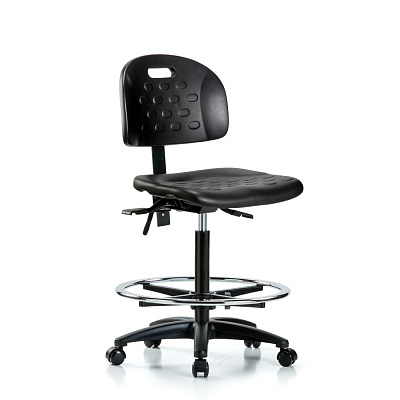 Промышленный полиуретановый стул Newport - Высокая высота скамьи с хромированным кольцом для ног и роликами черного цвета.