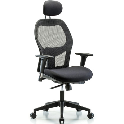 Представительское кресло с сетчатой спинкой Windrowe с подголовником, стандартными регулируемыми подлокотниками и роликами