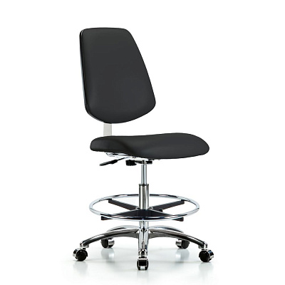 Хромированный виниловый стул для чистых помещений класса 10 - Скамья средней высоты со средней спинкой, хромированным кольцом для ног и т.д.