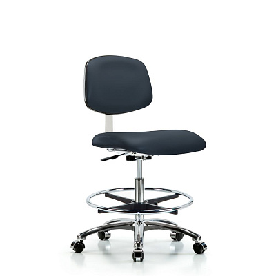 Виниловый стул для чистых помещений класса 10, хромированный - Средняя высота скамьи с хромированным кольцом для ног и роликами в Impe