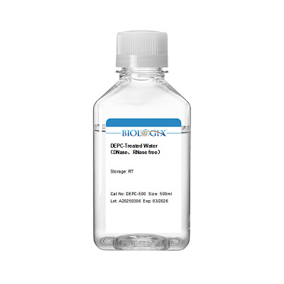 Вода, обработанная DEPC, - это сверхчистая вода, обработанная DEPC (диэтилпирокарбонатом) и стерилизованная при высокой температуре и высоком давлении. Она была протестирована на отсутствие РНКазы, ДНКазы и протеиназы.